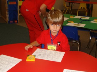Sat down in his big boy chair at his big boy table.