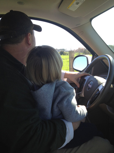 I love the way you love “driving” the truck on the farm with your daddy.