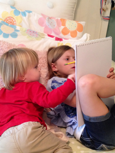 I love how you love crawling up into your Sissy’s bed to watch her draw.